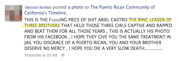 The alleged perpetrator is a man by the name of Ariel Castro and within hours of the news breaking on this story, links to his Facebook page were being shared on Twitter.
